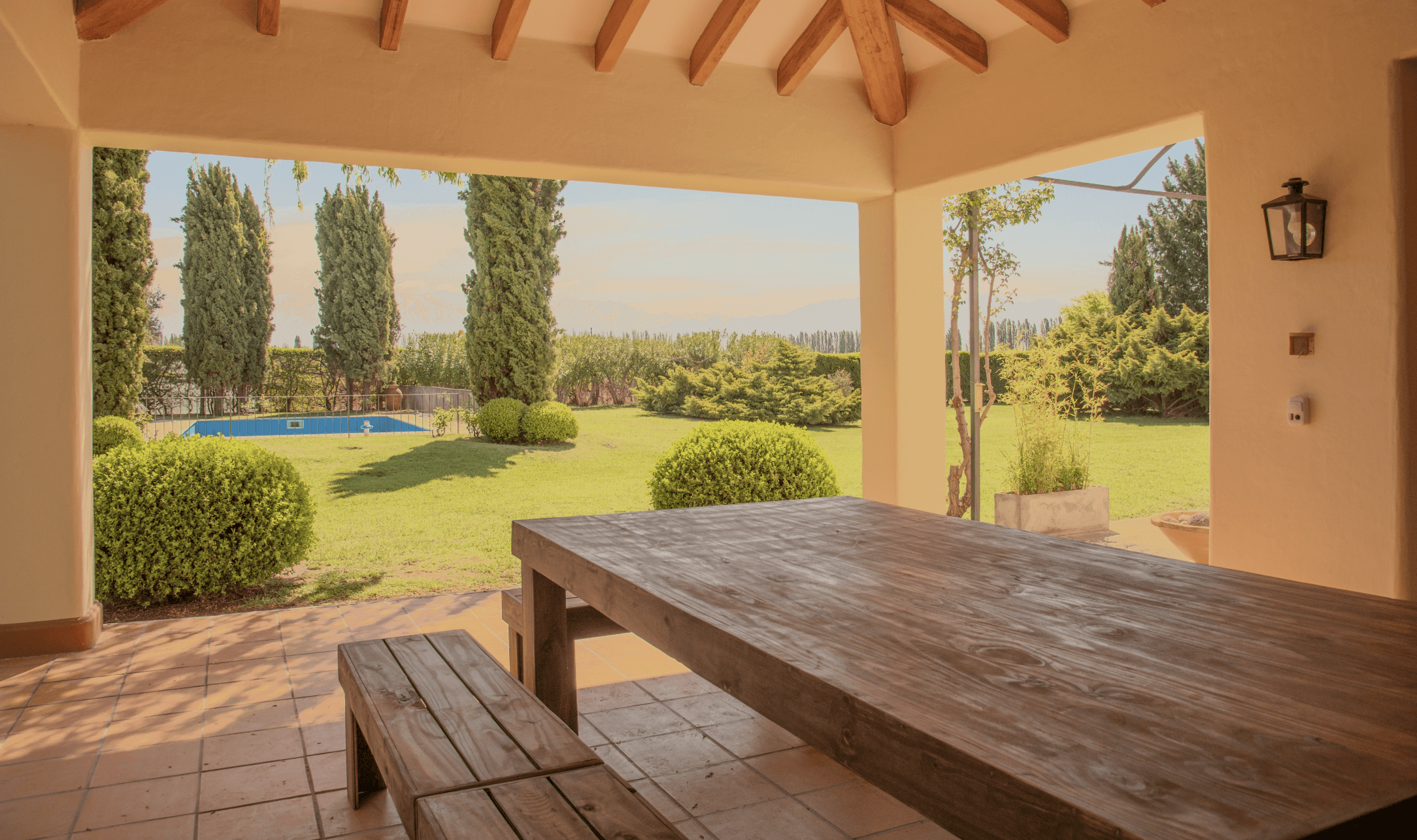 420m² de arquitectura colonial para 12 huéspedes. Pileta, asador, horno de barro y vistas a la Cordillera.