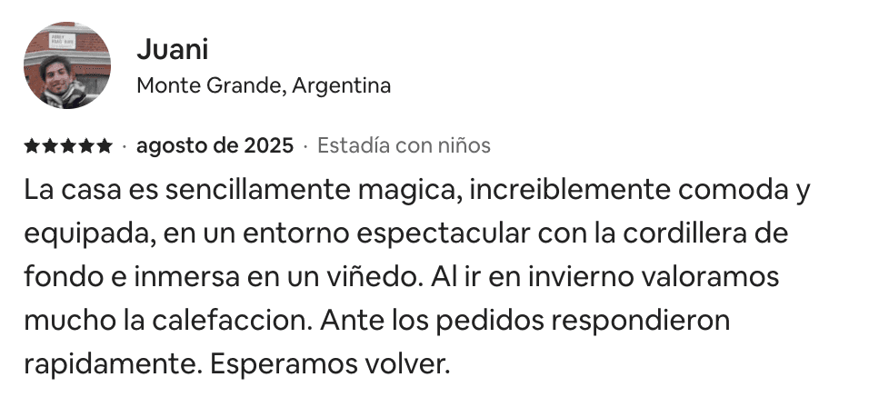 Despertá con vista a la cordillera y brindá con vino de la casa.